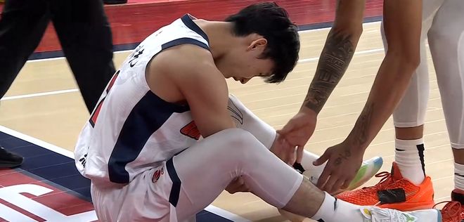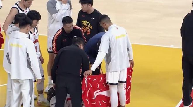 第三节杜锋先发萨姆纳陈家政,潘江也让迪亚洛首发,陈家政徐杰开局连中2记三分,8分38秒,场上突发伤病,陈家政在对位防守迪亚洛的过程中被其一肘干翻,倒地久久不起,离谱的是,杜锋要求裁判回看录像,但裁判姜志远一直没有表示!