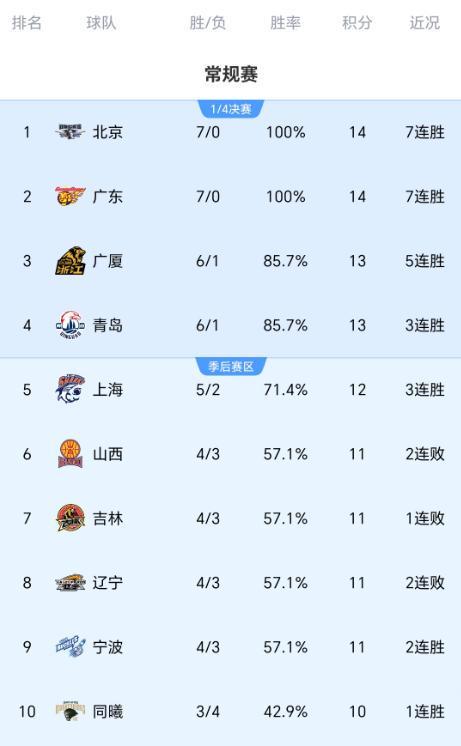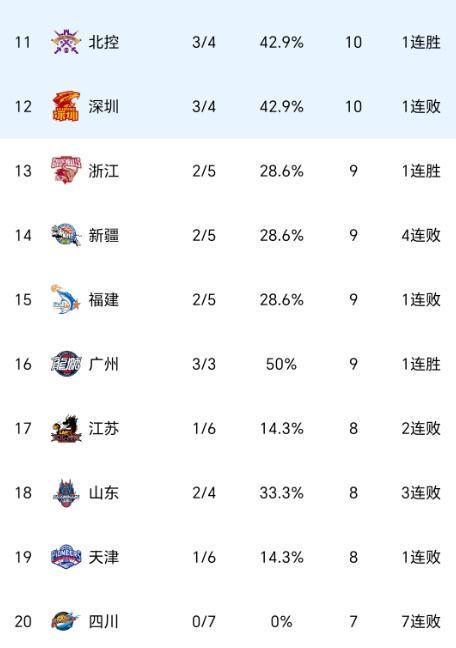 随着北京逆转,广东险胜,新疆四连败,CBA最新积分榜:榜首易主