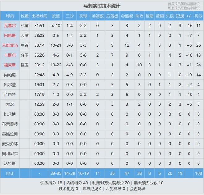 最后来看看比赛数据,你觉得福克斯适合搭档文班吗?