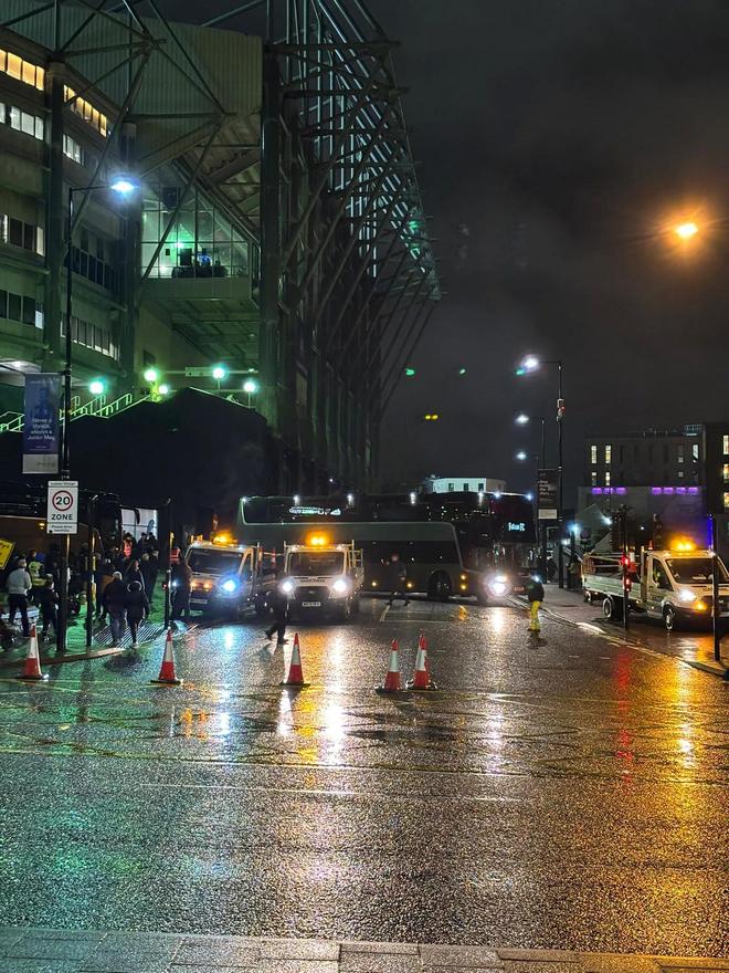社交媒体上的视频显示,这辆前方清晰印有“Fulham FC”字样的长途客车停在路中央。另一张照片则显示,大巴侧面似乎有一道明显的长划痕。