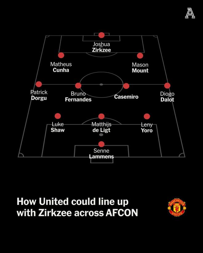 如果谢什科的膝伤恢复速度比最初预期的要慢(目前预计将缺席约一个月),齐尔克泽可以再次担任中锋,辅以库尼亚等人作为10号位。 曼联在非洲杯期间可能会损失一部分反击威力,但齐尔克泽为多种人员配置问题提供了一个可行的解决方案。