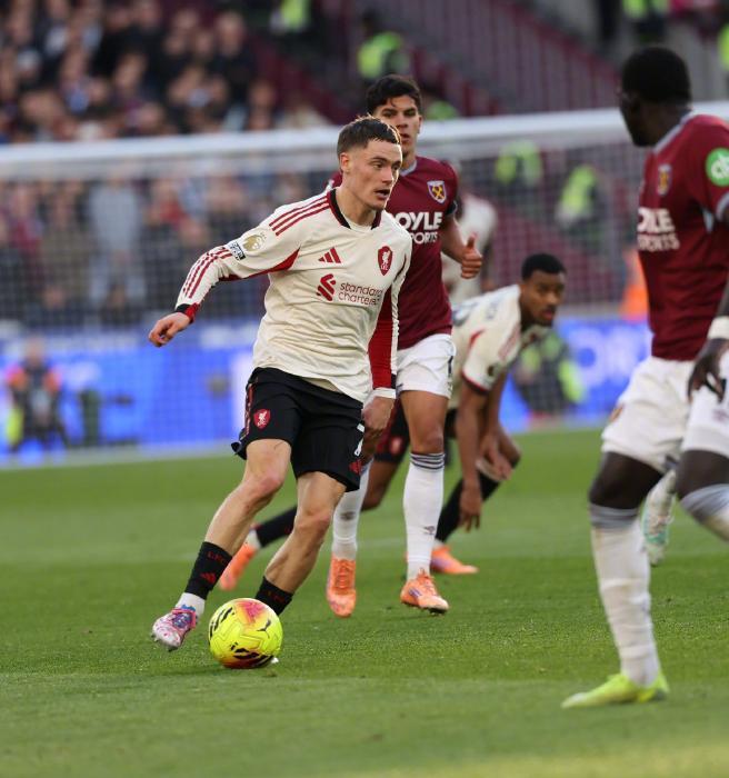 重新回到赛场之后,利物浦继续大举压上给铁锤帮的后防线施压,第60分钟维尔茨送出一脚直塞,加克波下底倒三角传中,伊萨克推射建功,打进了加盟利物浦后的英超首粒进球,帮助球队取得了1-0的领先。